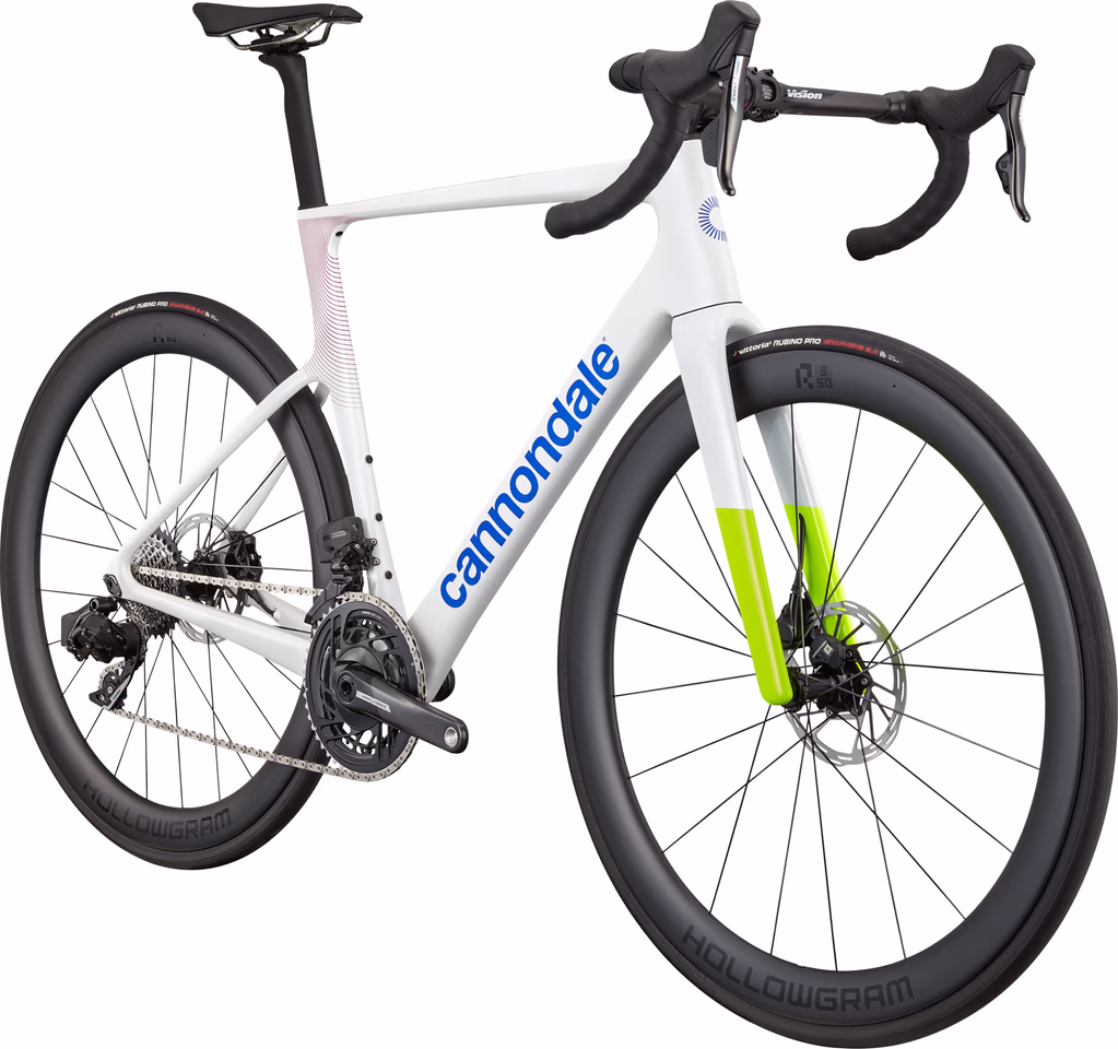 - Cannondale HollowGram R–S 50, carbon, 20 holes / 24 holes (front/rear), 50 mm rim depth, 21 mm internal width, Tubeless Ready, Center Lock, hubs with sealed bearings and DT Swiss 350 internals, Formula Grand Forza bladed spokes, Straightpull